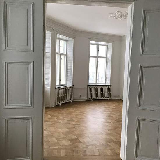 Spacious turn-of-the-century corner apartment with four rooms and a kitchen, located in Vasa with views over Hagakyrkan. The apartment underwent a complete renovation in 2019 with a new kitchen and bathroom, new finishes, and modernized electrical systems. Original details such as windows, doors, stucco moldings and ceiling rosettes have been carefully restored. In the room with the balcony there is a working tiled stove. The kitchen is from Ballingslöv and equipped with a built-in oven, induction hob, dishwasher and microwave, as well as tw...