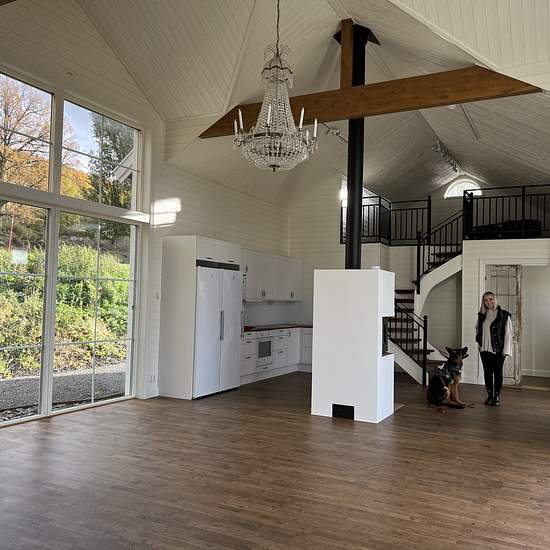 Huset ligger vackert beläget 1,5 km norr om Gränna stad. 10 min till E4, 25 min till Jönköping. Här kan du bo och njuta av den vackra kvällssolen på landet men ändå nära Gränna. Underbar utsikt mot Vättern och enorma vyer. Nära till skola,förskola,affärer som Gränna har att erbjuda. Huset byggdes 2015 som då var en butik men byggdes om till boende för 4 års sen. Det är en öppen planlösning med kök och vardagsrum och öppen spis med 4 meter i takhöjd. Det är 2 st sovrum, och ett stort loft som man kan använda till sovrum också ,hall, groven...