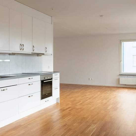 Planlösning Lägenheten är en ljus och välplanerad 4:a på 102 kvm, med öppen planlösning mellan kök och vardagsrum. Det finns tre sovrum och två badrum, samt möjlighet att skapa ett fjärde sovrum i vardagsrummet om behov finns. Köket och vardagsrummet ligger i vinkel med stora fönster i tre väderstreck, vilket ger mycket ljus och rymd. Från vardagsrummet når man den stora balkongen i soligt sydvästläge. Vad som ingår i hyran I hyran ingår värme, vatten och bostadsrättsföreningens fasta avgifter samt parkering i garage (plats finns i huset)...