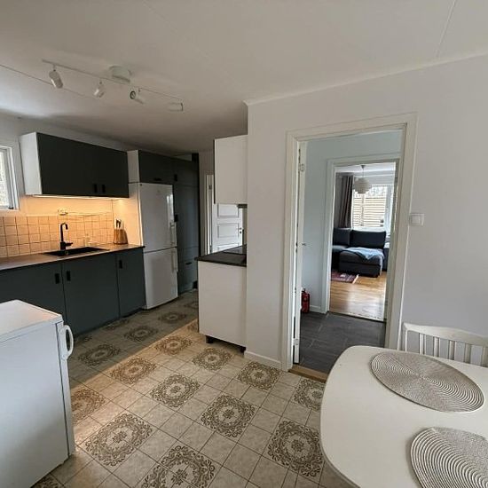 En nyrenoverad villa, fullt möblerad med nytt kök, stor TV, stor altan samt uteplats, vedeldad badtunna, grill. Plan 1: Hall, vardagsrum, rymligt och nytt kök utrustat med diskmaskin med stor matplats, badrum (med badkar och tvättmaskin), två sovrum (ena har våningsäng, andra dubbelsäng och förråd) Plan 2: Sovrum med två sängar Uthyres i minst ett år med möjlighet av förlängning (djurfritt, rökfritt), elkostnader tillkommer.
