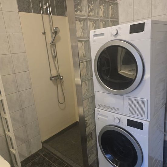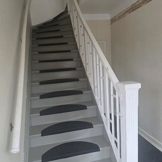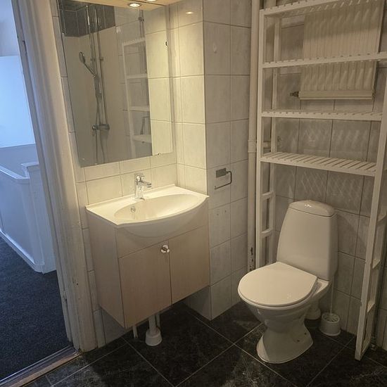 Fin stor lägenhet som är under renovering. Ingång på bottenvåningen. Trappa ned till förråd eller verkstad i källaren. Trappa upp till andra våningen där tre stora sovrum finnes. Ett sovrum har balkong. Balkong i vardagsrummet. Parkett i vardagsrum och ett av sovrummen. Kök med spis, ugn, kyl och frys. Diskmaskin. Fiber finnes. Badrum med tvätt/torkmaskin.