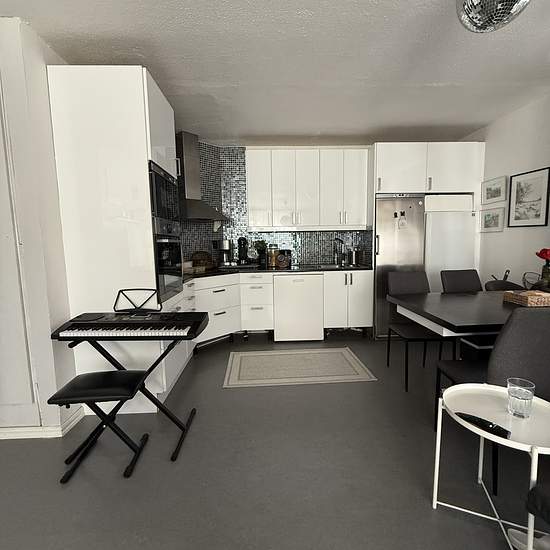 Spacious 4-room apartment on the ground floor – opportunity to be neighbours with friends or family Move-in May 1 | 120 sqm | 10,000 SEK/month Welcome to this bright and well-laid-out 4-room apartment (120 sqm), located on the ground floor of a quiet building with only two apartments – one on the ground floor and one on the upper floor. Here you live with a house-like feel, a large shared garden and your own patio. The ground-floor apartment has an open plan between the kitchen and living room, creating generous social spaces and lovely n...