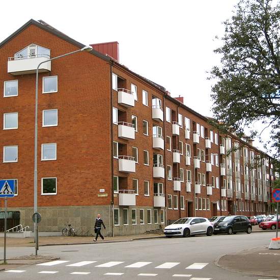 Slottshöjden is a district close to Helsingborg city centre. Fredriksdalsparken, with an open-air theatre, museum and gardens, is less than a fifteen-minute walk away. Large sports facilities border the area, including HIF’s home ground, a curling and ice rink, tennis and badminton halls, and exercise trails. The property was built in the 1940s and retains some interior fittings from that period. This property underwent a ROT renovation in 2010, and in connection with this the apartments received new kitchens and new bathrooms. The kitchen...