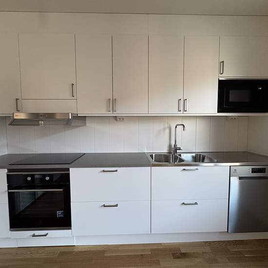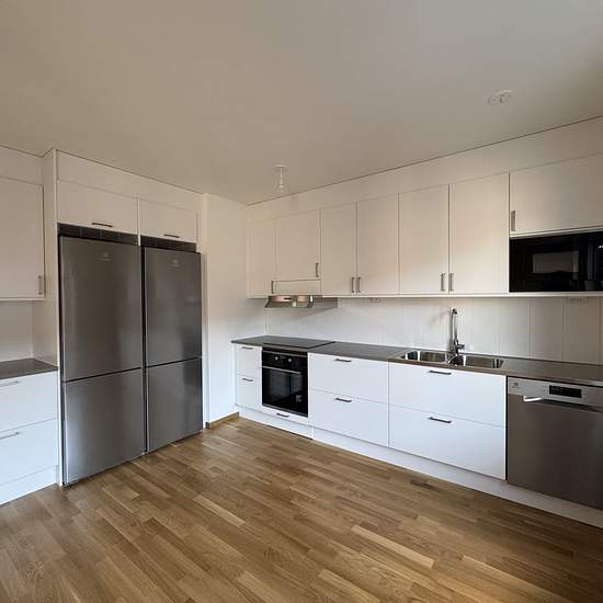 This home is newly built and you will be the first to move in. Move-in is also completely flexible — choose the date that suits you best! Spacious 4-room apartment of a full 97 sqm where the whole family fits comfortably. The apartment has a 5 sqm balcony with a sought-after south-facing orientation, perfect for sunny moments and relaxation. There are two bathrooms, one with a shower and one with a bathtub, both fresh and functional. A practical walk-in closet in the hallway provides extra storage and makes everyday life easier. With light ...