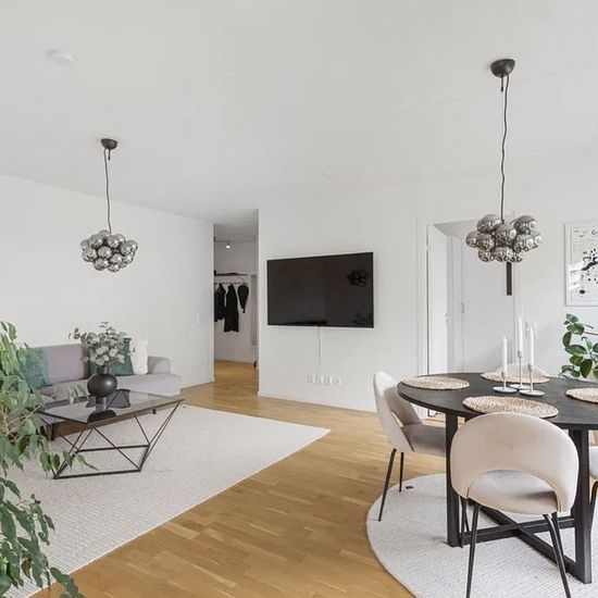 Hello! I am renting out my bright and well-planned apartment in Jakobsberg. The residence is approximately 82 sqm and is located on the third floor. It has an open floor plan between the kitchen and living room with access to a balcony, which provides nice natural light and a spacious feel. The apartment offers three bedrooms, which is suitable for a family or for you who need an extra room, for example, as an office. There are also two toilets and a large bathroom equipped with a washing machine and dryer. The kitchen is fully equipped wit...