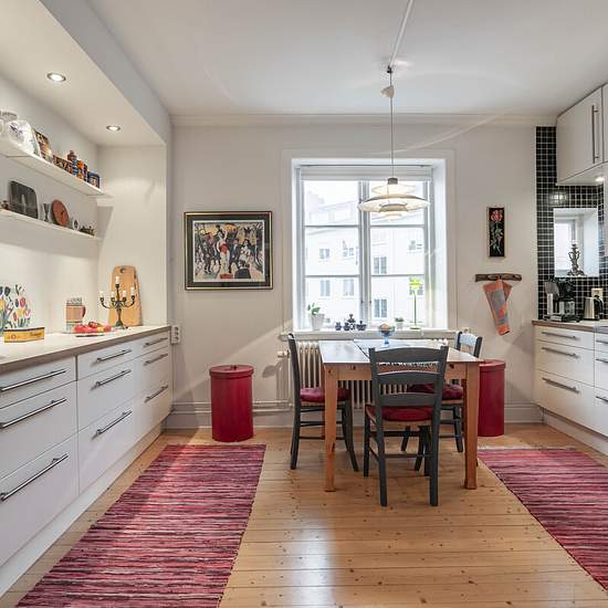 Bright and charming, well-planned and fully furnished 4-room apartment for 2–4 people on the second of three floors (no elevator). Two large bedrooms, two bathrooms with shower and toilet. Large kitchen with dining area. Two connecting living rooms in a row between the bedrooms. Plenty of walk-in closets and wardrobes and access to attic or basement storage. The building is 100 years old, very charming, well renovated and in good condition. The housing cooperative has 8 apartments where "everyone knows everyone" and they help each other wit...