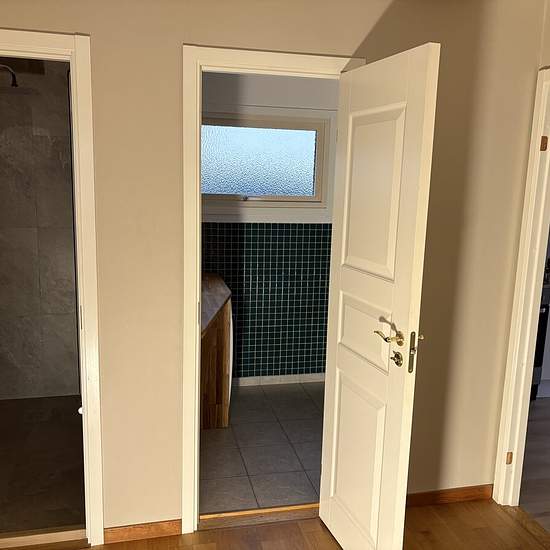 Very nice apartment 10 meters from the water with a wonderful sea view in two directions. Private fireplace in the living room. Kitchen and bathroom newly renovated. Yes, the whole apartment is freshly painted in muted, beautiful colors on the walls. Shared garden with greenhouse. Private storage in the basement. The apartment can be configured with 3 or 4 bedrooms, or alternatively a larger kitchen. 2-minute walk to restaurants and public transport. 3-minute walk to the beach. Heating and water are included in the rent. Household electr...