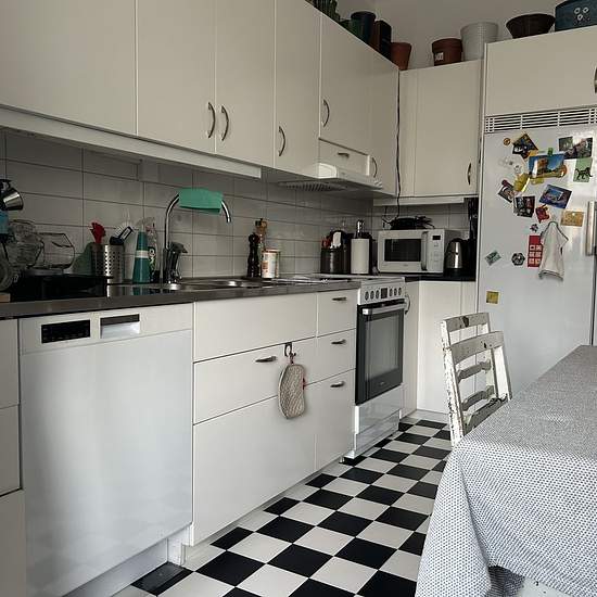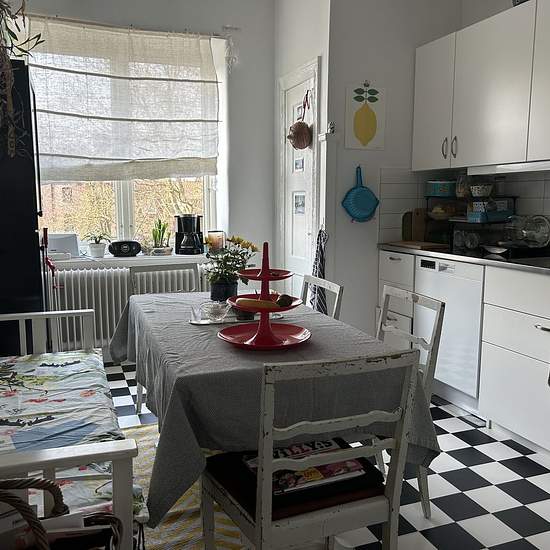 Charming 4-room apartment in the colorful buildings on Pilgatan. Welcome to this spacious, through-apartment on the third floor. You are greeted by a bright and pleasant home with large windows and generous ceiling height that create an airy, roomy feel. The apartment has light walls that give a fresh and inviting impression. The hall and living room have beautiful parquet flooring, while the bedrooms have vinyl flooring and practical wardrobes in each room. The kitchen is sleek with white cabinetry nicely contrasted by a classic black-and-...