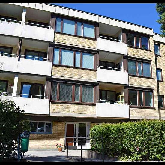 Nice four-room apartment in the popular Eskadern. After the building's plumbing renovation a few years ago, the apartment was given an open-plan kitchen and living room, three bedrooms, a spacious hall and storage space in a walk-in closet. The bathroom has dark gray floor tiles, white tiled walls, a washing machine and a shower area.