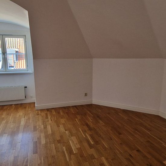 Large bright attic apartment with dormer windows in a building from the early 1900s. Access to a shared balcony/terrace.