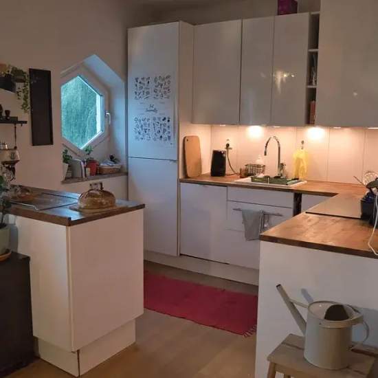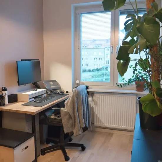 We're renting out our lovely apartment in Slottstaden we moved abroad job related and we're now looking for new tenants since the current ones plan to move. It is a 4 room apartment, big open kitchen/living room, master bedroom, one smaller bedroom, 1 office space (can be made into a smaller bedroom). Place is fully furnished, we took the bed and a desk. We do have a spare 140 mattress that can be used. A lot of the decoration you see in the images has also gone with us. The apartment is 86 sqm, has a North facing balcony that gets sun in...