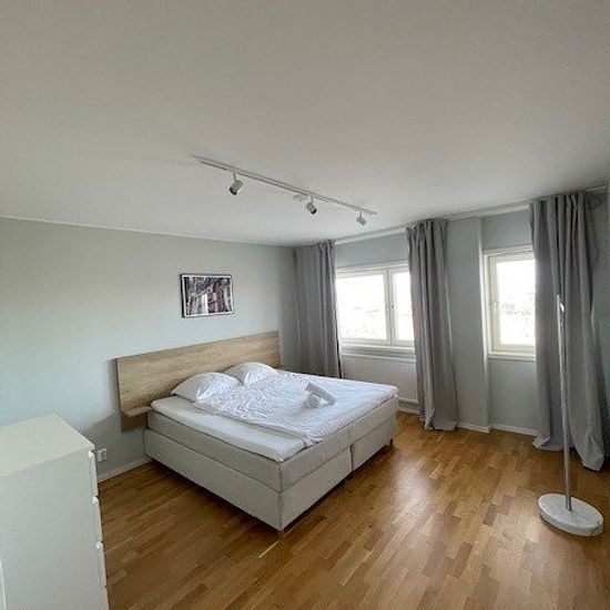 Housing About the residence Welcome to this cozy duplex apartment with a striking view over Malmö. Located on the 11th floor out of 12 and spread over a full 128 square meters. Rental information The rent includes heating, water, and cable TV from Tele 2. The apartment currently has a rent discount of 2,367 SEK per month valid until September 30, 2030. Please note that the annual rent increase occurs as usual during this period. The apartment is spread over two floors and the tasteful renovation gives a modern yet homely impression. The kit...