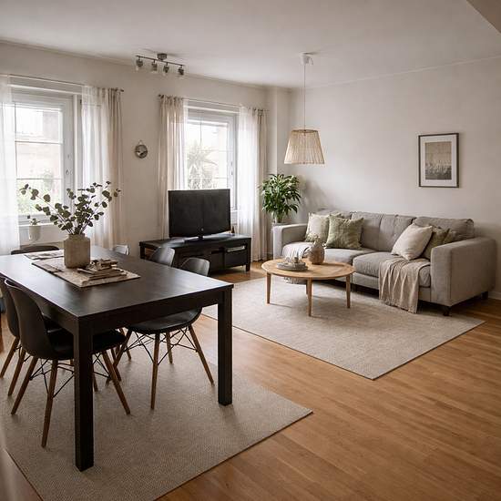 Questions? Contact us Contact: Email: EMAIL Phone: 0501-278860 Welcome to apply for this 4-room apartment with a kitchen, 116 m². The apartment has continuous parquet floors and fresh surfaces that give a modern and pleasant impression. The kitchen is equipped with light cabinet fronts, countertops and modern appliances from Bosch, and it also includes a dishwasher. The apartment also has a washing machine and tumble dryer. The location is central and attractive, with proximity to services, public transport and everything that Mariestad'...