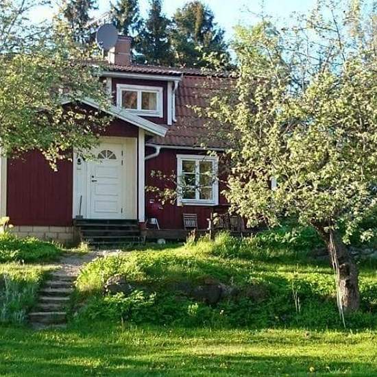 Old-fashioned cottage in the countryside. One bedroom with a double bed and one bedroom with a bunk bed plus a single bed. Living room with two sofas, one of which is a sofa bed. Upstairs common room with a sofa, a daybed for two people and a sleeper armchair.