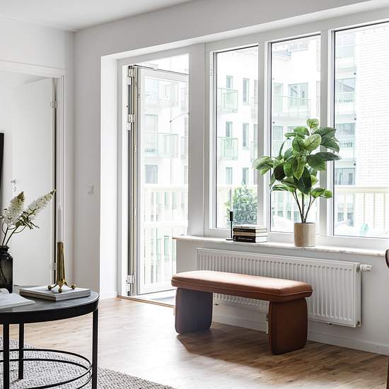 I Slagsta Strand there are now move-in ready rental apartments in sizes of 1–4 rooms and kitchen (RoK). The apartments are offered here through HomeQ. The homes are well designed and thought through down to the last square meter. Most have a balcony, with or without lake view, or a private patio facing the courtyard. The high standard is consistent from room to room. The entrance hall has tiled flooring and the rest of the apartment features oak parquet throughout. The kitchen from Marbodal has a tiled splashback, dishwasher, built-in micro...