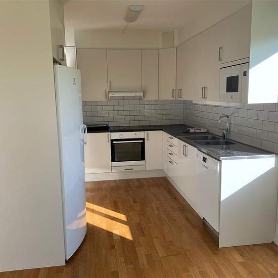 Welcome to this bright and beautiful 4-room apartment with a kitchen! Here you'll find every convenience you could wish for, including a washing machine, tumble dryer, dishwasher, microwave and security doors. Enjoy a large balcony and two toilets. Heating and hot water are included in the rent. Household electricity and IPTV (fiber) are charged separately. Fiber connection is available; subscription is taken out separately. Central location close to shops, a school, preschool and pleasant walking paths. In the building's basement there is a...