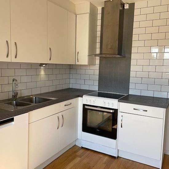 Well-planned and spacious four-room apartment of a full 94 m² with two bathrooms – perfect for a larger family or for you who need extra space. The apartment offers a generous living room, three good bedrooms and a large kitchen with full equipment: dishwasher, fridge, freezer, stove and oven. There is also plenty of storage, two storage rooms, a balcony and a security door for added safety. A comfortable home in a quiet and pleasant area. The apartment is located in a quiet and well-maintained area close to services, grocery stores, green...