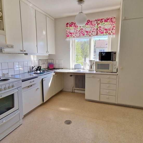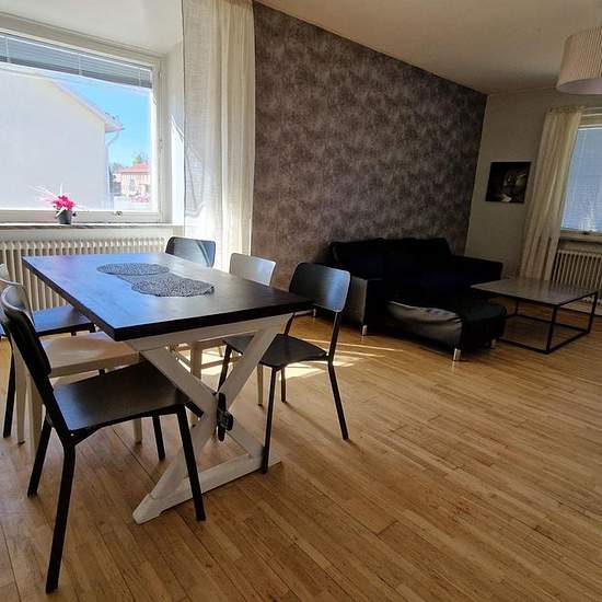 The apartment, which is a four-room unit of 92 m², is located on the second floor (two flights up) of the building and has a balcony at the rear. The property is connected via fiber to the Sollefteå municipal network through Arkaden Bredband, and tenants can take out their own subscriptions with the broadband providers that can deliver services to the property. The property also has a communal CATV connection that includes an analog basic package. Tenants can subscribe to various channel packages through the provider Sappa.