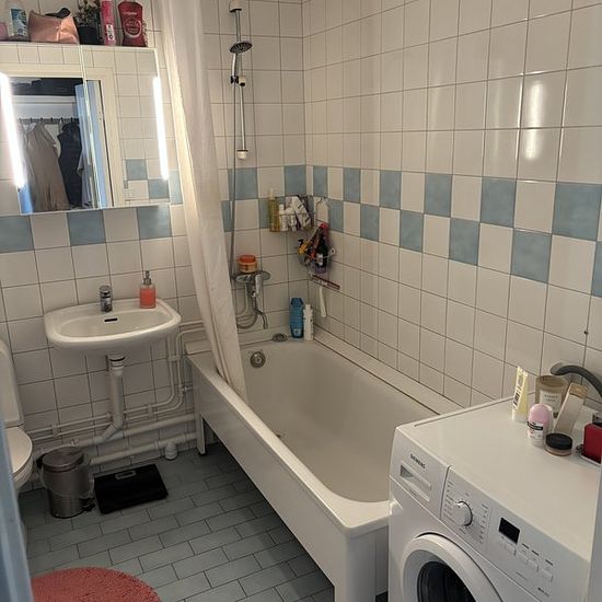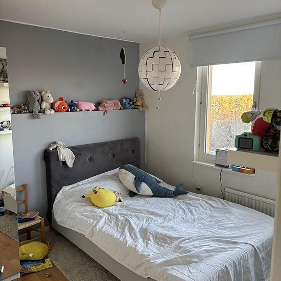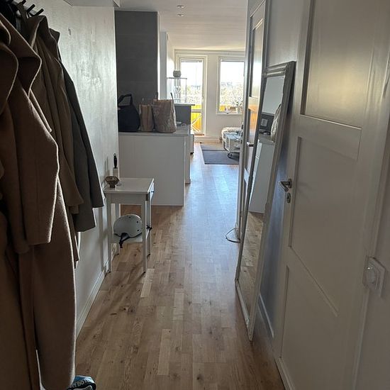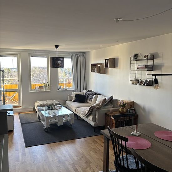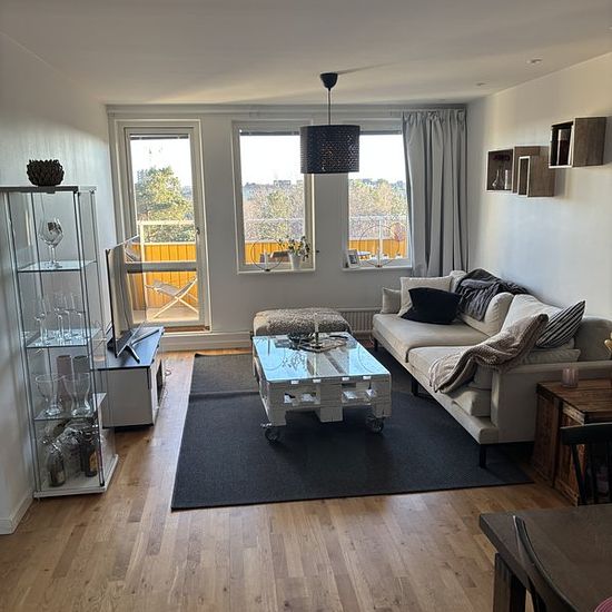 A three-room apartment converted into a four-room apartment with three bedrooms, one of which is used as a guest room. Nice, sociable kitchen with an open floor plan between the kitchen, dining area and living room. All in a private setting with a south-facing balcony that gets sun virtually all day. Large dining table with seating for 6–8 people. Fully tiled bathroom with washing machine and bathtub. There is wireless internet and a TV (unfortunately quite old, but large). Only rented out for this short period while I will be away. The date...