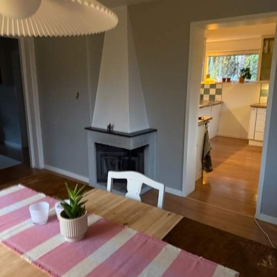 Mysig villa i två plan belägen i barnvänliga puketorp med närhet till skogen. Trivsam men äldre standard. 3 bra sovrum på övre plan. Ett badrum med badkar, en toalett och en mindre tvättstuga med duschkabin och tvättmaskin. Kuperad tomt med flera uteplatser i olika sollägen. Ett mindre garage och plats för två bilar på uppfarten. Ett rum, samt en hall kommer vara avstängt under hyresperioden.