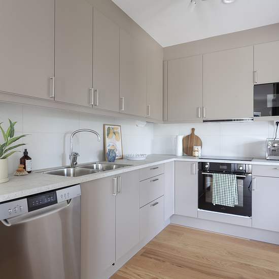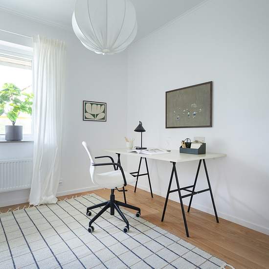 Rent a two-storey townhouse in the Berget block in Sörskogen in Skara. Lower floor: - Hall with tiled floor, wardrobe and coat rack - Fully tiled bathroom with shower, washing machine, tumble dryer and storage - Storage under the stairs - Large kitchen from HTH with beige cabinets, induction hob, refrigerator, freezer and dishwasher - Dining area with room for the whole family - Living room with access to a large deck with decking and a small grassy patch Upper floor: - Hall that can be used as a reading nook - Three bright and fresh bedro...
