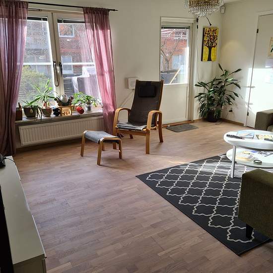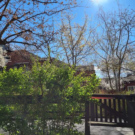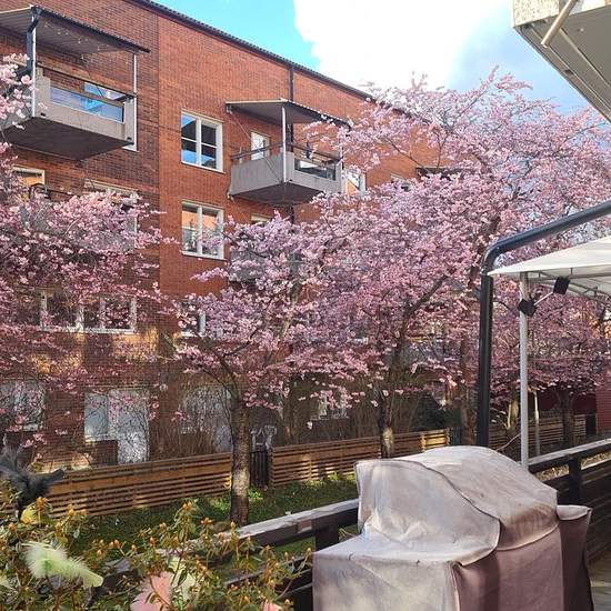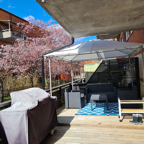 Incredibly nice and pleasant apartment with two large patios that follow the sun’s path, with grass and deck surfaces and the possibility to grow your own plants. There is the option to barbecue and socialize outdoors with wonderful afternoon sun. Proximity to nature, with Flatenbadet around the corner and other nature reserves, makes it very pleasant to go for walks in the neighborhood whenever the mood strikes, and the fact that there are so many convenient ways to use the public transport system is a great advantage, with the subway and s...