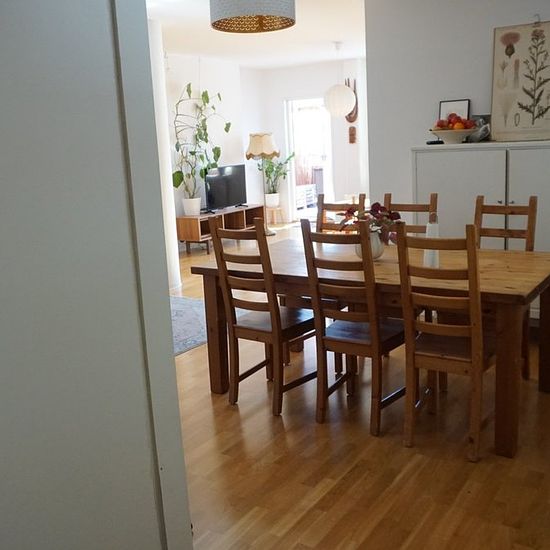 Lägenheten: *4,5 rum och kök – 114 kvm *Balkong *Två toaletter * Andra våningen *Uthyres omöblerad Föreningen: *Cykelbod (ingår i hyran) *Tillgång till gästlägenhet *Stor och välskött innergård med flera grillplatser och lekplats *Flera tvättstugor *Möjlighet att hyra parkeringsplats i garage Läget: *Ca 4 minuters promenad till tunnelbanan *Nära butiker, apotek och övrig service *Mycket nära Nackareservatet, med fantastiska naturstråk och badplatser Serviceavgift för hyresgäst: 1011
