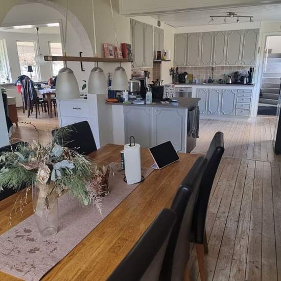 Two-story house just a stone's throw from Tjönarps station. With its 161 sqm, this house offers plenty of space for the whole family and for all different interests. The ground floor is entirely dedicated to socializing and togetherness while the upper floor provides calm and the private sphere. In the enormous living room you can sit and read a book in peace at one end while an heated football match is on at the other without either of you having to give up what you want to do. In the middle you meet as a family in front of the fireplace, w...