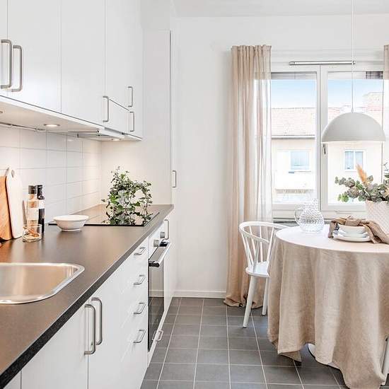 Welcome to register your interest in this 4-room, 98 m² apartment. The apartment is bright throughout with white walls and wood floors. The kitchen has white cabinet doors with a dark gray countertop. A hob and dishwasher make everyday life comfortable. There is space for a dining area. The bathroom is light in a tasteful light-gray color with a glass shower wall. The rent is currently under negotiation. The photos are example images from other apartments renovated to the same standard. Please submit your expression of interest.
