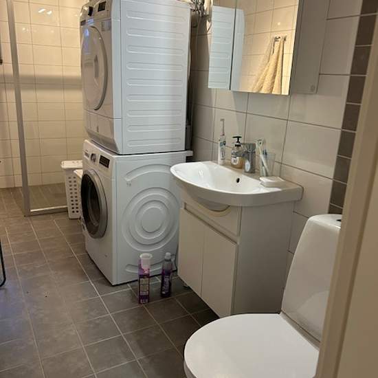Fin, ljus och välutrustad lägenhet i tre plan utmed Torshällaån. Entréplan, hall med stort förvaringsutrymme. Våningsplan 1, Stort välutrustat kök, vardagsrum med balkong mot ån, klädkammare samt gästtoalett. Våningsplan 2, badrum med dusch, tvättmaskin och torktumlare. Tre sovrum och goda förvaringsutrymmen. Till lägenheten finns även ett förråd i markplan. I huset finns även separat tvättstuga och i trädgården en gemensam uteplats.