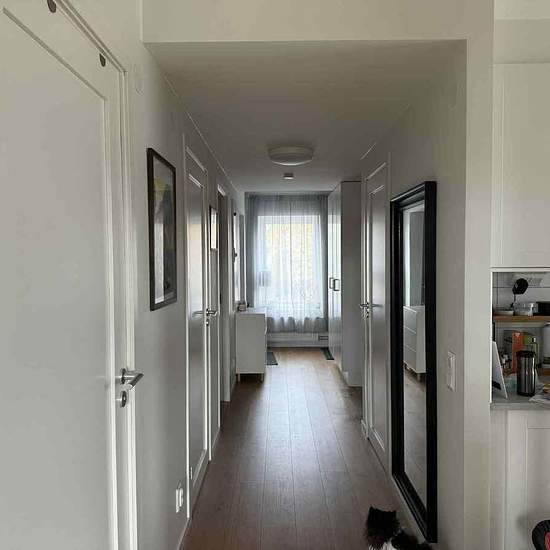 Välkommen till en fin och välplanerad lägenhet med vitmålade väggar och parkettgolv som skapar en ljus och trivsam känsla i hela hemmet. Här bor du bekvämt i ett modernt boende med hög standard och egen balkong. Köket är stilrent med vita köksluckor, vitt kakel samt mikrovågsugn, diskmaskin och bra förvaringsmöjligheter. Badrummet är fräscht med grått klinkergolv med golvvärme och vitt kakel på väggarna. Här finns dusch med dörrar, separat tvättmaskin och torktumlare, kommod under handfatet och spegelskåp med inbyggd belysning. Lägenheten ...