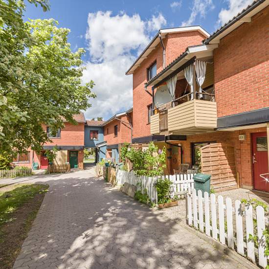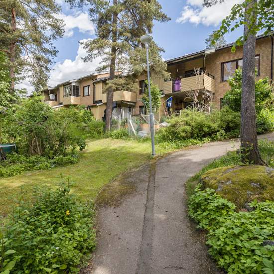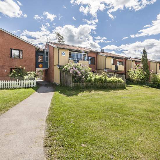 Bostad Här får du chans att flytta in i en fin lägenhet i 3 plan med bra förvaringsmöjligheter. Liten uteplats på framsida och en balkong i söderläge med utsikt över skog.Lägenheten har genomgående målade väggar med gråton och vitlaserat laminatgolv i alla rum.Badrummet har grå 15x15 klinkers på golv och vit blank 10x30 kakel på vägg. Både badrum och duschrum har dusch med draperistång. Badrumsskåp med spegel och ledbelysning. Står ett badkar i lägenheten i dag men det är hyresgästens privata. Hallen har grå klinker närmst ytterdörren.Köket...