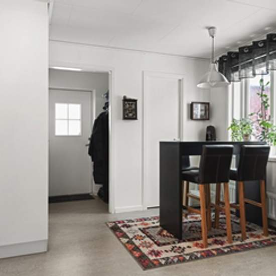 The apartment is located in a picturesque rural setting that offers a calm and relaxing lifestyle. This apartment has two bedrooms and is ideal for a small family seeking a secluded and peaceful place to live. Harg is centrally located on Vätö, with a bus stop adjacent to the property and both a school/childcare facility and a grocery store only a few hundred meters away.