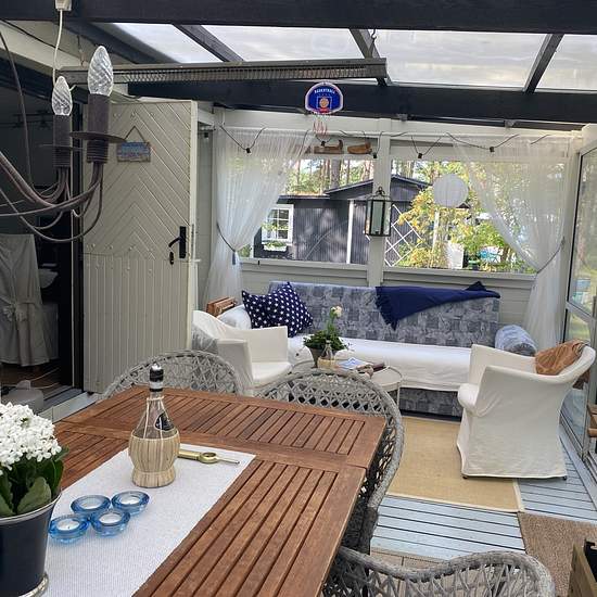 We rent out our summer cottage during the winter months when we don’t stay there. It consists of two cabins with separate kitchens, a shower room and two TV rooms, one of which has an open fireplace. Large natural plot of 1,650 m². Close to the sea — 900 m away — and to lovely walking areas. 10 km to Kristianstad. Service fee for tenant: 371