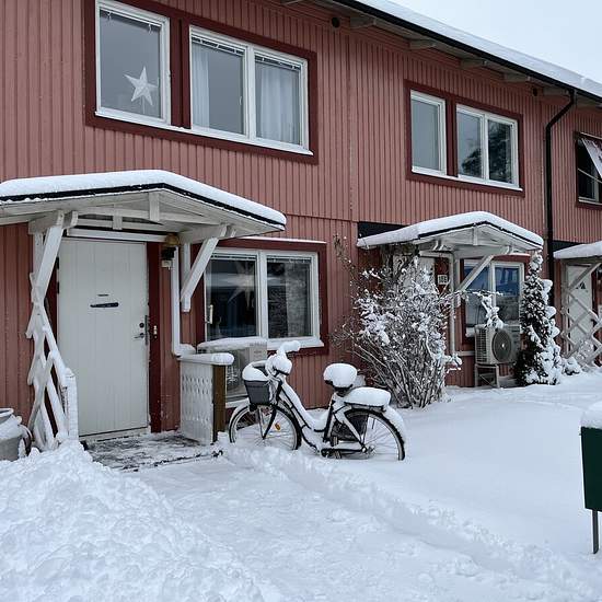 Welcome to Runöbacken 104. A well-planned townhouse with three bedrooms on the upper floor and an airy kitchen and living room on the lower floor for socializing. One bathroom on each floor. PAX wardrobes with sliding doors in the two larger bedrooms. Walk-in closet on the upper floor. Floored attic for additional storage. Direct access to a wooden deck in the backyard with a large flower bed that blooms in summer. Fiber installed. New air-source heat pump 2022, new oil-filled radiators 2025. Centrally located in a child-friendly area with s...