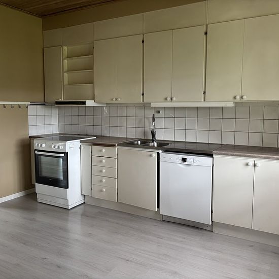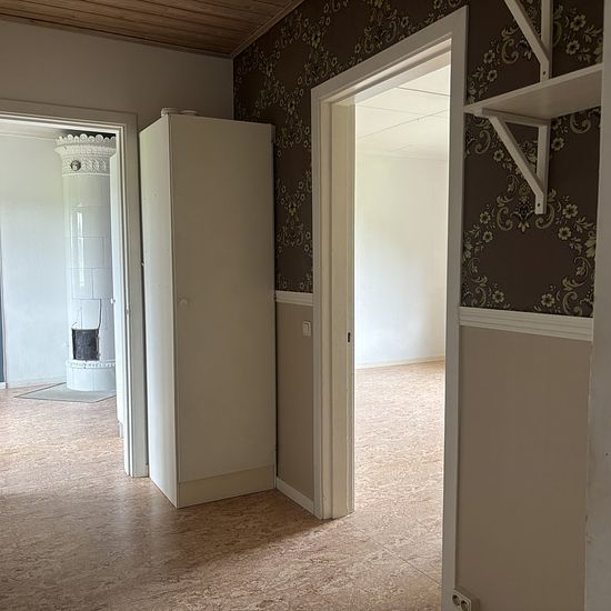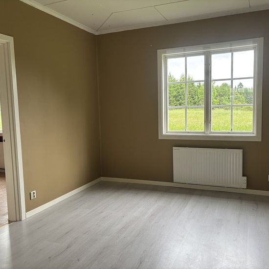 Part of a semi-detached house in the countryside. Very secluded location. Close to forest, fields, and cow pastures. Estimated at approx. 120m2, 4 rooms + kitchen + bathroom with toilet + toilet room. Air heat pump and electric heaters. (Burning ban in stoves and tiled stoves, this may potentially be addressed through discussion.) Veranda. Garden with cultivation opportunities. Part of a carport and the possibility to park one more car. 3 storage rooms in an outbuilding. The tenant takes care of small repairs, snow removal, and garden ...