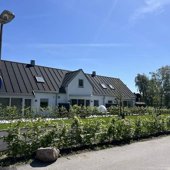 Exclusive apartment/townhouse in Barsebäck in 1.5 storeys with a large patio in a newly built house comprising a total of 5 units. The residence is approx. 100 sqm and consists of 4 rooms and a kitchen, of which 2 are bedrooms. Two bathrooms with a laundry room. Consistently high-end materials and quality. Two parking spaces are included, one of which is under a carport with a charging point. On the property there is a communal orangery with a wood-burning stove. There is also a pergola with outdoor furniture. Large garden. REQUIREMENTS ...
