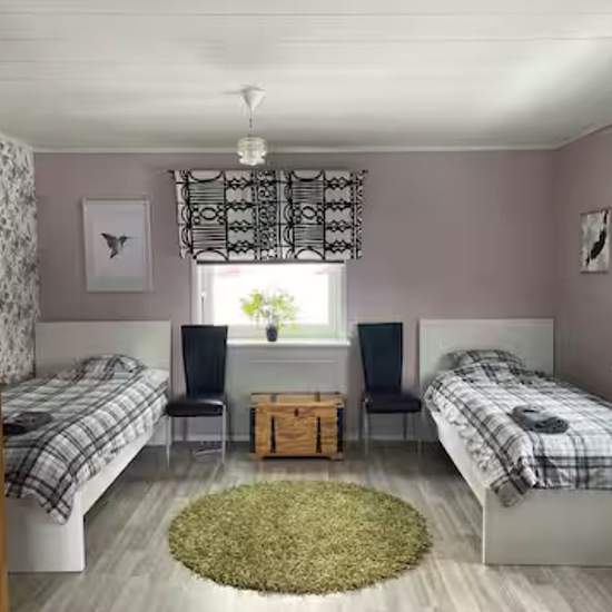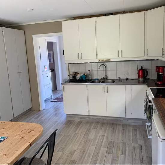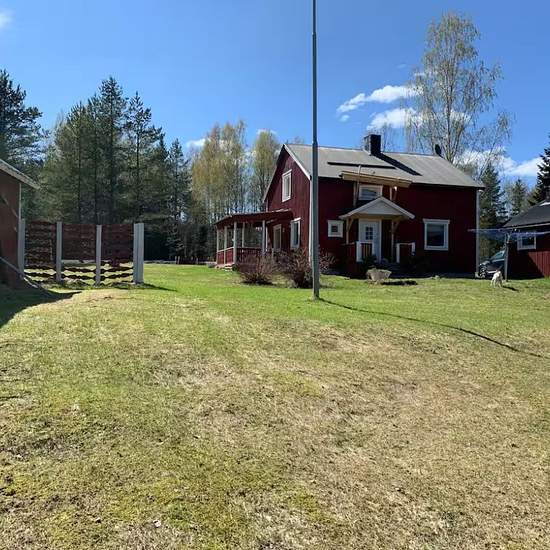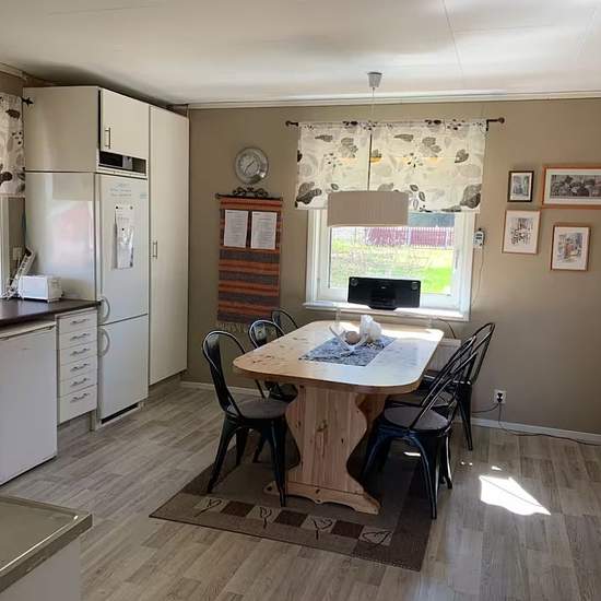 The residential house is 125 sqm. Built in 1930. Two bedrooms and a bathroom on the upper floor. Kitchen, hall, dining room/living room and guest toilet on the ground floor. The garage with a laundry room was built in 1979 and is 33 sqm. Idyllic location, though right next to a busy road. Large plot with its own bathing beach and fishing in the Klintforsån. No visible neighbors. Garbage collection and mobile broadband are included in the rent. The rent is cold rent (utilities excluded) and the cost of electricity is additional. If the ren...