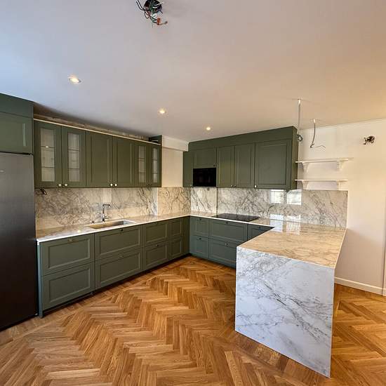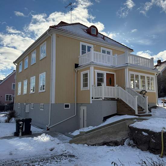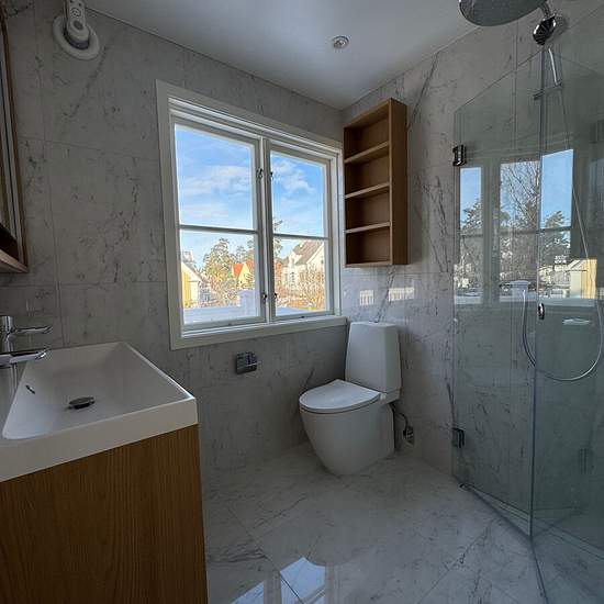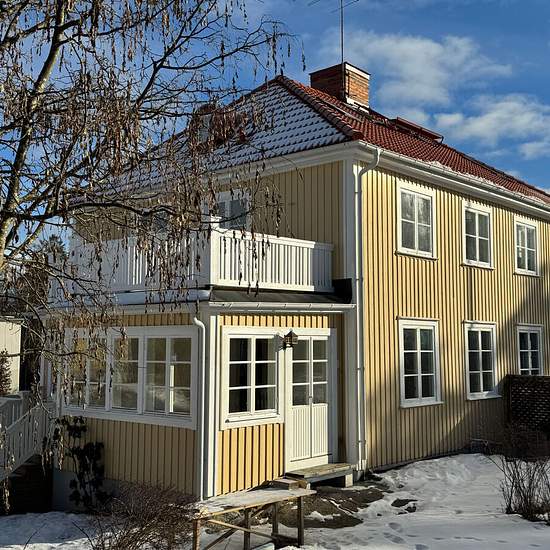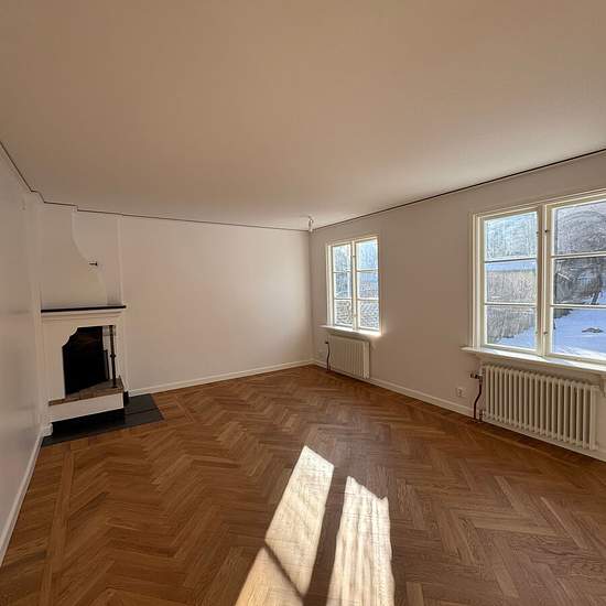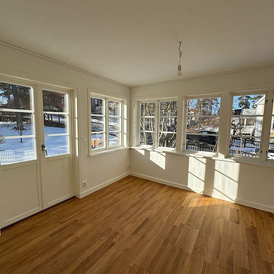 At one of Bromma's most sought-after addresses you are now offered the opportunity to rent a fully renovated semi-detached house from 1923 with approximately 170 sq m of living space. Over the past year the house has undergone a very extensive and tasteful renovation that, among other things, resulted in a completely new kitchen, two brand-new bathrooms and a guest toilet, as well as a completely new heating system. Throughout the house there are brand-new floors with beautiful stone and herringbone parquet and a harmonious color scheme. Wel...