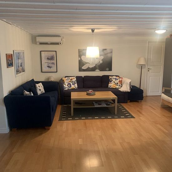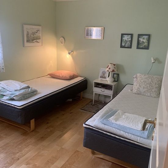 Summer cottage in Gullbranna 14km south of Halmstad 10 minutes walk to a fantastic sandy beach! The cottage has everything needed for a holiday on the west coast! Two bedrooms with two beds inside the cottage. Plus a small cabin with two beds. Kitchen with 45cm stove/oven, microwave, coffee maker, kettle. And all necessary kitchen utensils. Air heat pump with AC and heating. TV. Note! No wifi. Bathroom renovated in 2023 with shower, toilet, and washing machine. Several outdoor seating areas on the property. Charcoal grill. The cottage is ren...