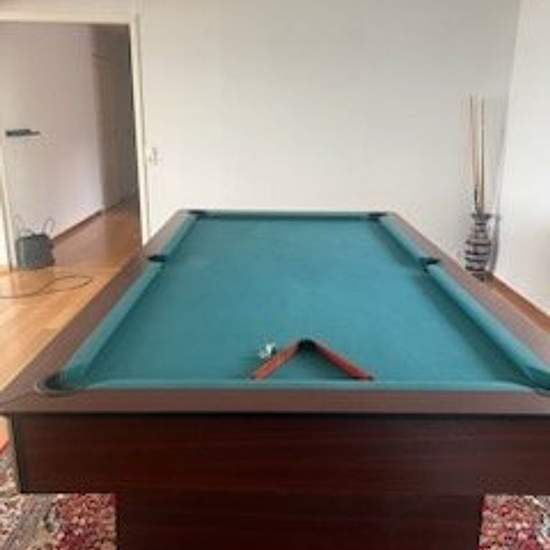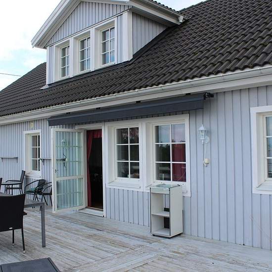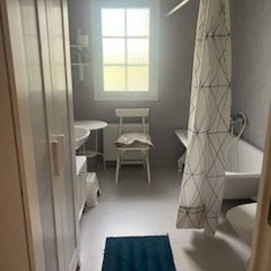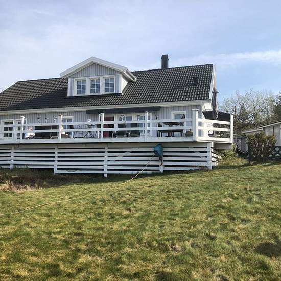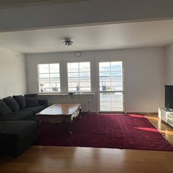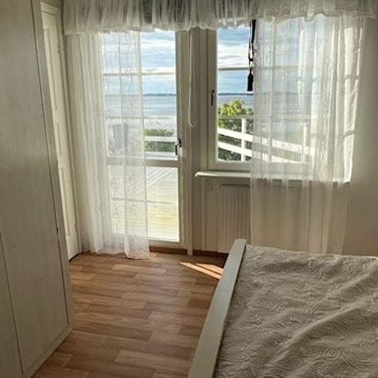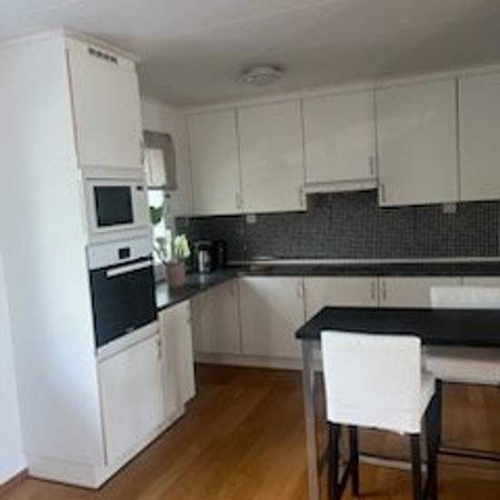 A large villa with a large terrace/balcony. The house is situated on high ground with a view over the water. It is 200 meters to the lake. Three bedrooms are included, and two bathrooms. A large living room with a TV and a pool table. Modern kitchen with an induction hob. 2,000 square meter plot. A covered parking space is also available. The area is quiet and family-friendly. In summer you can walk down to the lake and swim. The rent is cold rent. Service fee for tenant: 892