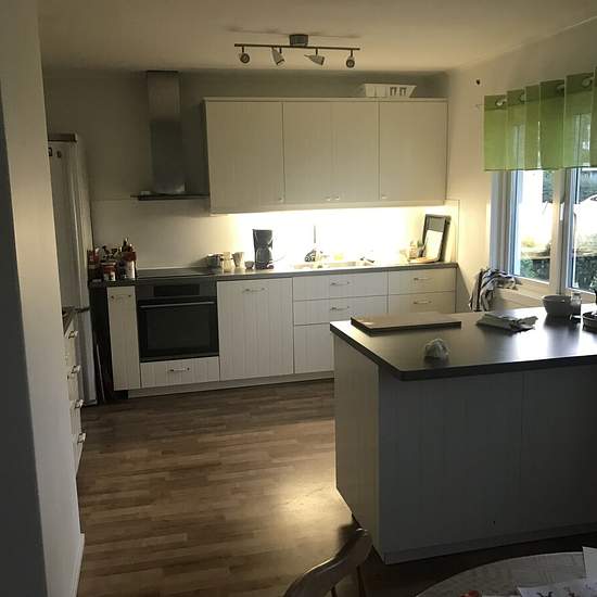 Nice villa near Skrea Beach. Beautiful newly renovated kitchen with a large dining area. Enclosed sunroom. New heating system. Good storage space in the basement. Cozy! Service fee for tenant: 346