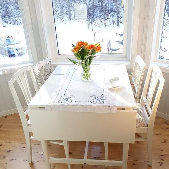 We are renting a furnished villa in a scenic location in northern Drängsered. The house is approx. 90 m², divided between the entrance level and a finished basement. The upper floor consists of a kitchen, living room and two small bedrooms. The lower level in the basement consists of a small family room and a bedroom. On this level there is also access to a washing machine and tumble dryer. There is a 25 m² terrace on the west side of the house that the tenant may use. The host couple live on the same property. Included in the rent: furnitu...