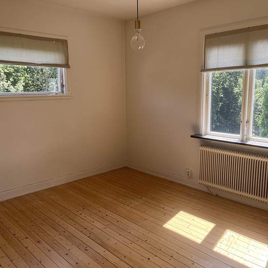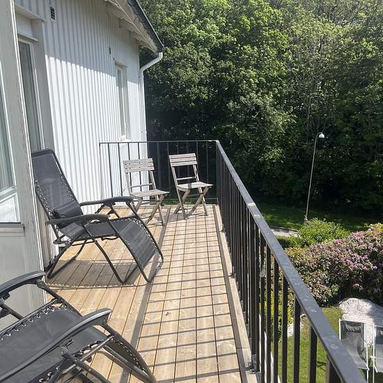 The upper floor of an elevated two-family house in the attractive Örgryte area. On the identical lower floor there lives an adult and two older teenagers. Lovely leafy area, quiet street, close to the city, the golf course, Delsjön and woodland. School, preschool, bus and tram nearby. Nice, airy, spacious apartment with a newly renovated large balcony with room for a grill and views over the garden and surrounding area. Use of part of the garden can be discussed. Brand new dishwasher and stove/oven. All rooms freshly painted white and beaut...