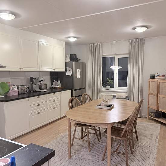 Totalrenoverat hus uthyres, bergvärme, fiber & två garage Välskött och totalrenoverat hus uthyres. Entréplan om 76 m² med modernt kök, rymligt vardagsrum och två sovrum. Källare om 76 m² med stor hall, gästrum, tvättstuga, extra duschrum, separat toalett samt garage. Öppenspis i vardagsrummet och kamin i källaren går att elda i både. Stort uteplats i trädgården. Övrigt: • Fiber indraget • Effektiv uppvärmning via bergvärme • Nyligen asfalterad uppfart • Två garage: ett i källaren + fristående garage ca 30 m² Driftkostnad: ca 3 000 kr...