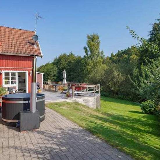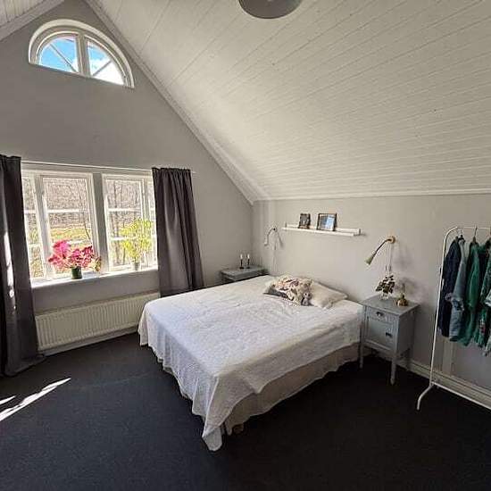 We are renting out our lovely home in Ågarp, just outside Halmstad. 2 large bedrooms (one with a double bed, one with 3 beds), large living areas, sauna and hot tub, close to nature. A guest cottage. Furnished. Electricity and heating are not included in the rent. We want to rent to someone who will also take good care of the house, make sure the robot lawn mower runs, etc. Service fee for tenant: 693