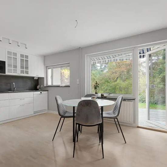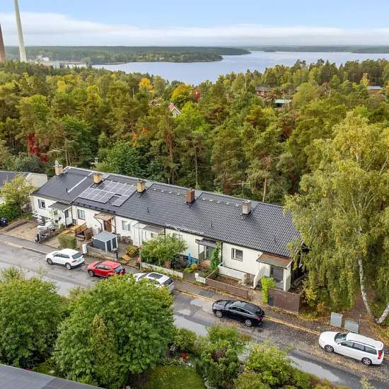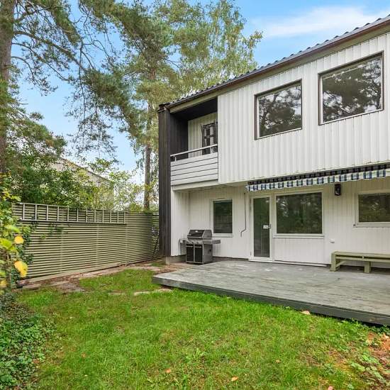 Pleasant end-terrace townhouse in the quiet Hässelby Södra Villastad with three split levels plus a basement and an associated garage parking space. Completely renovated inside with two bathrooms, a new electrical panel (grounded), full pipe replacement and relining. Newly painted walls and ceilings and newly lacquered original floors that give the house a real lift. New district heating in the house together with water-based radiators and a fireplace. Within walking distance to daycare, a restaurant and forest with walking trails. 3 minutes...