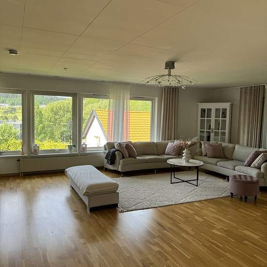 Nice furnished villa for rent for a short or longer period to responsible tenants. The villa has 3 bedrooms, a large living room and kitchen. Two toilets, a shower with bathtub and a laundry room. Parking for 2–3 cars. Private garden, the bus stop is 2 minutes away. Close to schools and shopping centers. Internet and heating are also included in the rent. Service fee for the tenant: 1485