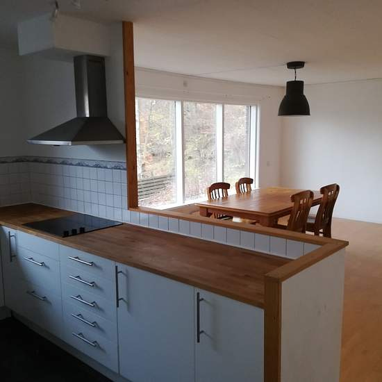 Stor lägenhet nära skogen och Bokedalens naturreservat. Cykel avstånd till Aspen och badplats. Stor uteplats och insynings skyddad trädgård. Huset ligger längst upp på gatan som sista hus vid skogen. Bastu stortbadrum. 2 wc. Pellets kamin och öppet kök. Parkering för två bilar. Ledig för inflyttning. Deposition 2 månadshyror. Inga rökare eller betaln. anm. Sökande skicka information om er som söker (alla). Sysselsättning och nuvarande bostad. Serviceavgift för hyresgäst: 767