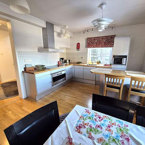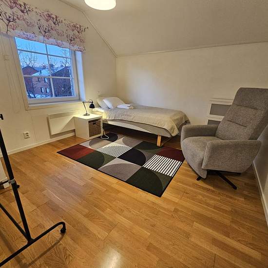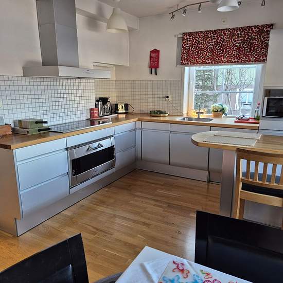 Cozy villa for companies (English translation below) Comfortable accommodation for work crews and project teams Are you looking for practical and homely accommodation? This fully equipped villa has four separate bedrooms and offers a comfortable and efficient housing option. The house is fully furnished and equipped with a washing machine, tumble dryer, dishwasher, two toilets, a shower, a TV and Wi-Fi. Parking spaces are available directly outside the house. The villa is located in a quiet and pleasant area close to both Coop and ICA, pe...